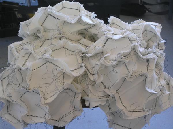"Slaap" is een combinatie van vier in stof uitgevoerde bollen. Een van de bollen ademt zachtjes in en uit, en werkt daardoor rustgevend en meditatief op de toeschouwer.