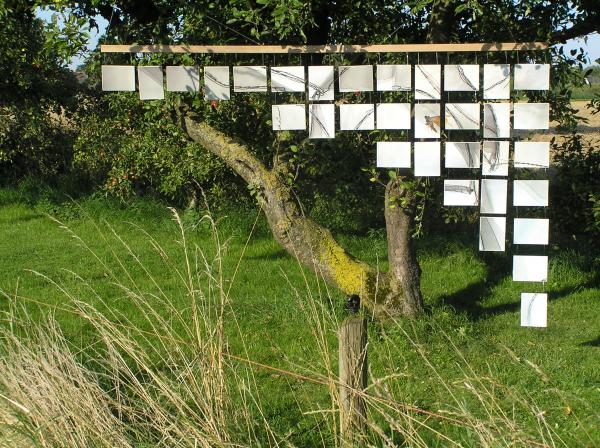 Materiaal: hardhout, staaldraad, kroonstenen, foto's